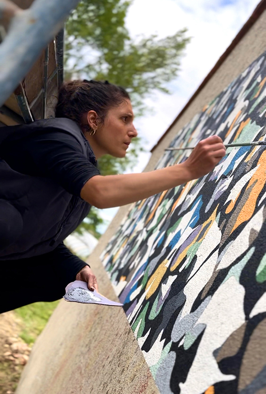 Sa fresque célèbre la biodiversité et l’identité de la Communauté urbaine de Dunkerque et met en lumière la richesse de sa faune et de sa flore. Inspirée de l’Atlas de la Biodiversité Communale, et tout particulièrement la fougère scolopendre, symbole de résilience et d’adaptation. On peut y distinguer les silhouettes de certaines espèces de la région comme l’aigrette garzette. La fresque invite à contempler la beauté et la richesse d’un écosystème en perpétuelle évolution